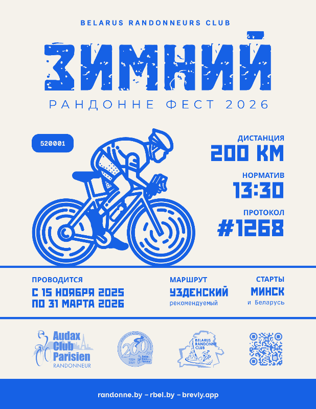 Серия Рандонне Фест 2026 проводится по Плану бреветов в РБ в 2026 году. Успешное прохождение феста приравнивается к прохождению обычного бревета с зачётом и омологацией в АСР.