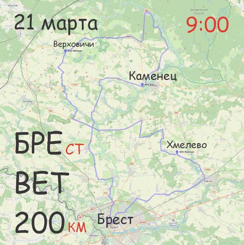 Маршрут: Брест-Каменец-Верховичи-Хмелево-Брест