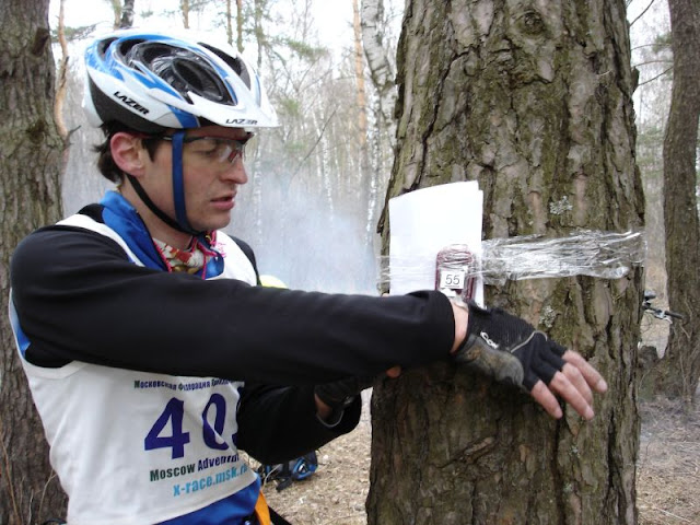 В итоге работаем неплохо, но в условленные 8 мин КВ не вкладываемся и нас ждет вкусный «бонус» в виде одного дополнительно штрафного КП, благо туда обратно сгонять можно по хорошей бетонке. Укладываемся в 15 минут, пара минут перевести дух и уходим на велоориентирование.