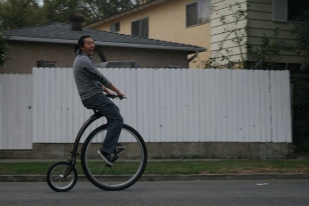 Велосипед ни разу не странный. Обычный чоппер с коряво прилепленым силуэтом.